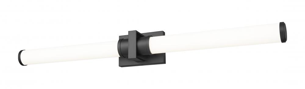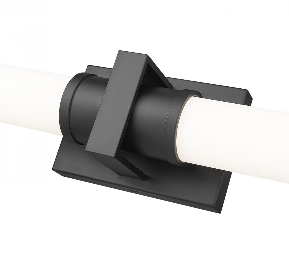 Cool and crisp with a matte black finish, this modern LED vanity bath light sets the tone in your primary or guest en suite. Its clean-lined design is augmented with a decorative square cuff and end caps in matching matte black, complementing opal glass shades that cast inviting, glare-free illumination in your bath. The integrated LED light is dimmable and color selectable for optimal versatility, sure to meet the needs of a variety of spaces.