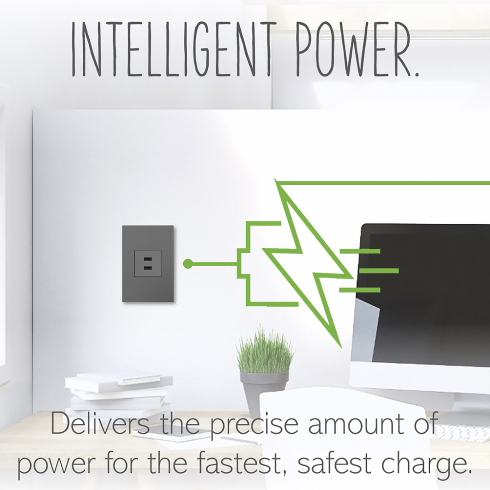 Charge phones, tablets and more up to 40% faster, with Ultra-Fast USB Outlets from the adorne? Collection. Delivering a leading 6 amps of power to its two USB connections for faster in-wall charging, without an adapter. Made exclusively for use with screwless Wall Plates from the adorne? Collection, sold separately.