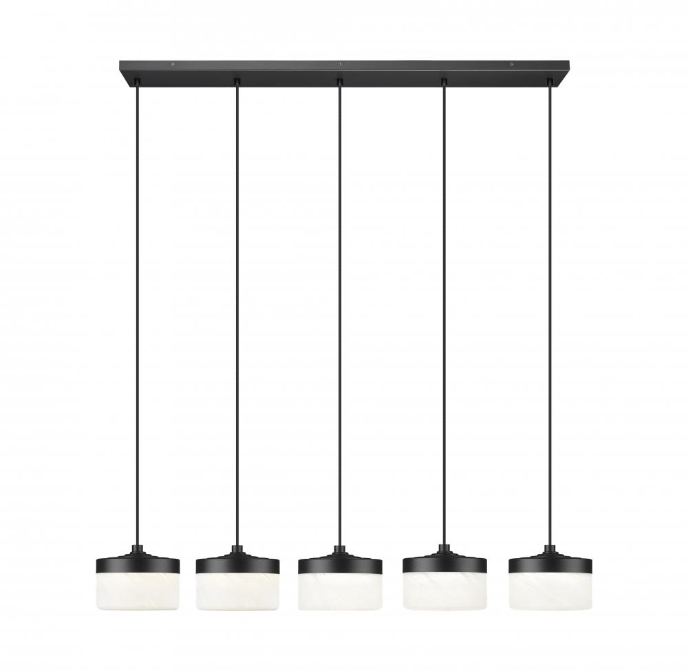 Slim cords suspend this matte black 5-light linear LED chandelier in a precise row that outlines the length of a kitchen island or family table. Used on its own in a narrower space or paired with recessed lighting in a larger room, it adds definition and an assured sense of style.