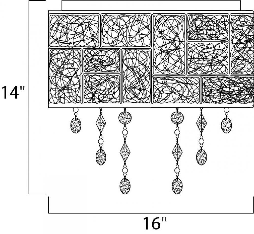 Hand formed panels of Polished Nickel wire are braised together to form unique shades. Shades are lined with a Twilight fabric, adding a sparkle effect. Strands of jewelry-grade lures with Clear glass beads add an eclectic accent.