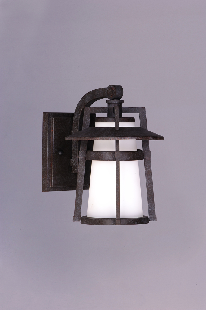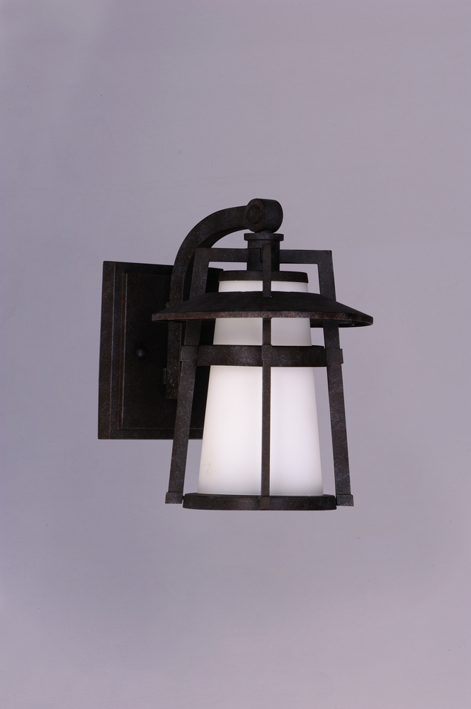 Classic, contemporary style of Die Cast aluminum finished in Adobe features an integral hood and Satin White conical shade, which help cast light in a downward direction.