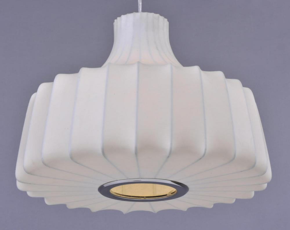 A web of fiberglass Is bonded together with latex and stretched over steel frames, creating a 5O's contemporary design. When illuminated, the fiber shows through the soft fabric and adds texture to this unique look.