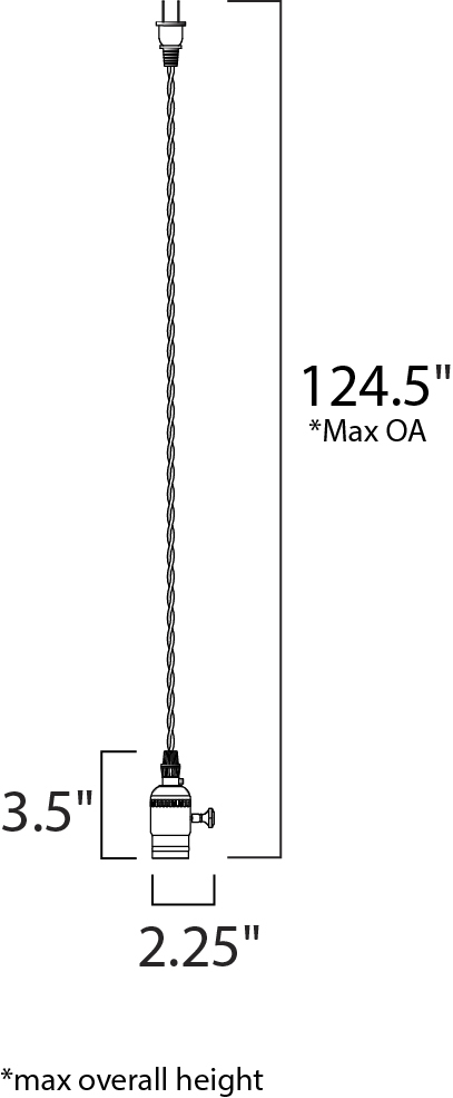 Cords of Black fabric support metal sockets finished in a natural Antique Brass allow you to create unique and fun lighting. All except the single pendant are supplied with hangers that attach to the ceiling to allow you to swag each socket. There are a nu