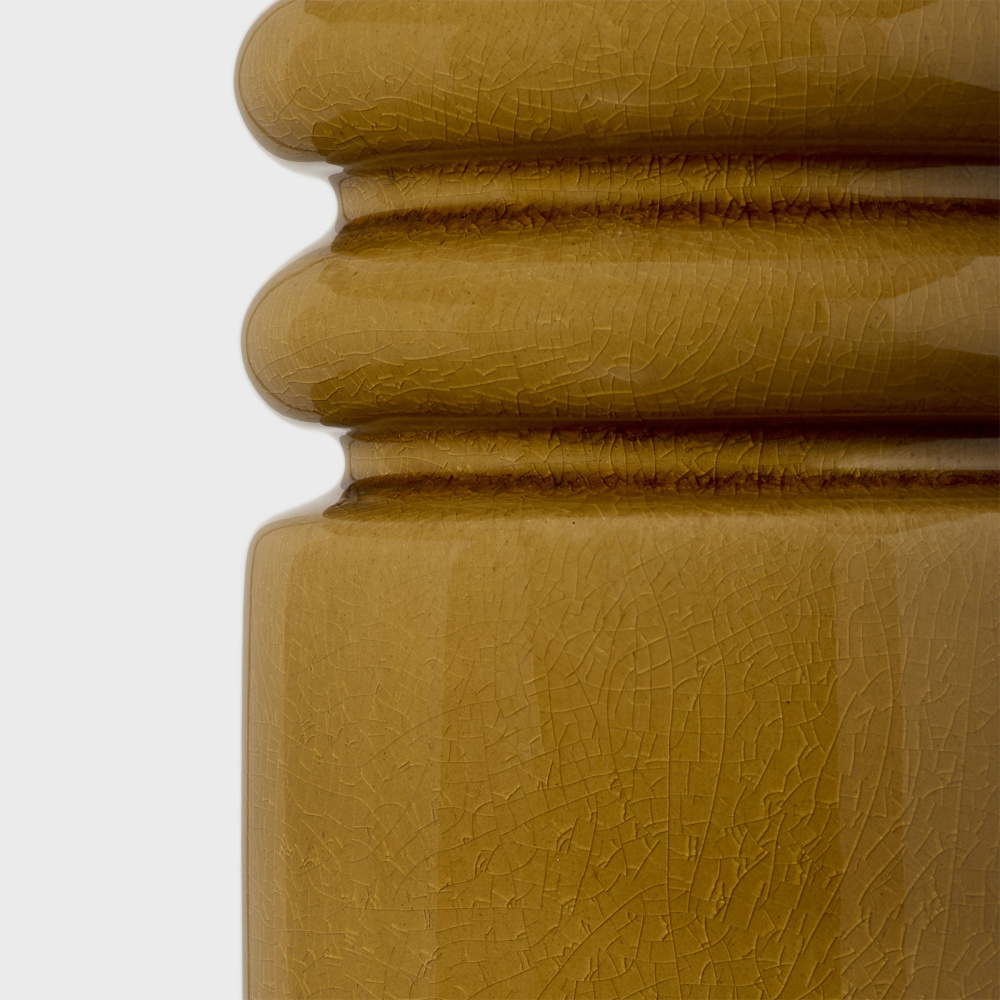 The Feikudo table lamp by Ellen DeGeneres is a stunning tribute to artisanal ceramics, blending handcrafted artistry with timeless design. Its cylindrical base features intricate carved details, brought to life by a crackle glaze that enhances its texture and character. Inspired by California's serene landscapes, the lamp's color palette harmoniously balances soft and bright neutrals, evoking a natural yet refined aesthetic. The Feikudo table lamp effortlessly combines modern sophistication with rustic charm, making it a versatile piece that can stand alone as a focal point on a credenza or desk, or be styled in pairs to frame a bed or sofa with elegance and symmetry.