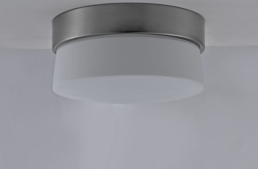 Clean white opal glass is illuminated from a hidden LED light source. Handsome Satin Silver finishes pair well to create this commercial grade LED product.