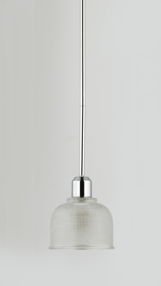 Crisp and clean define this new collection with Polished Chrome frames and Clear, prismatic shades. The geometric pattern of the glass diffuses the glare while providing ample light.