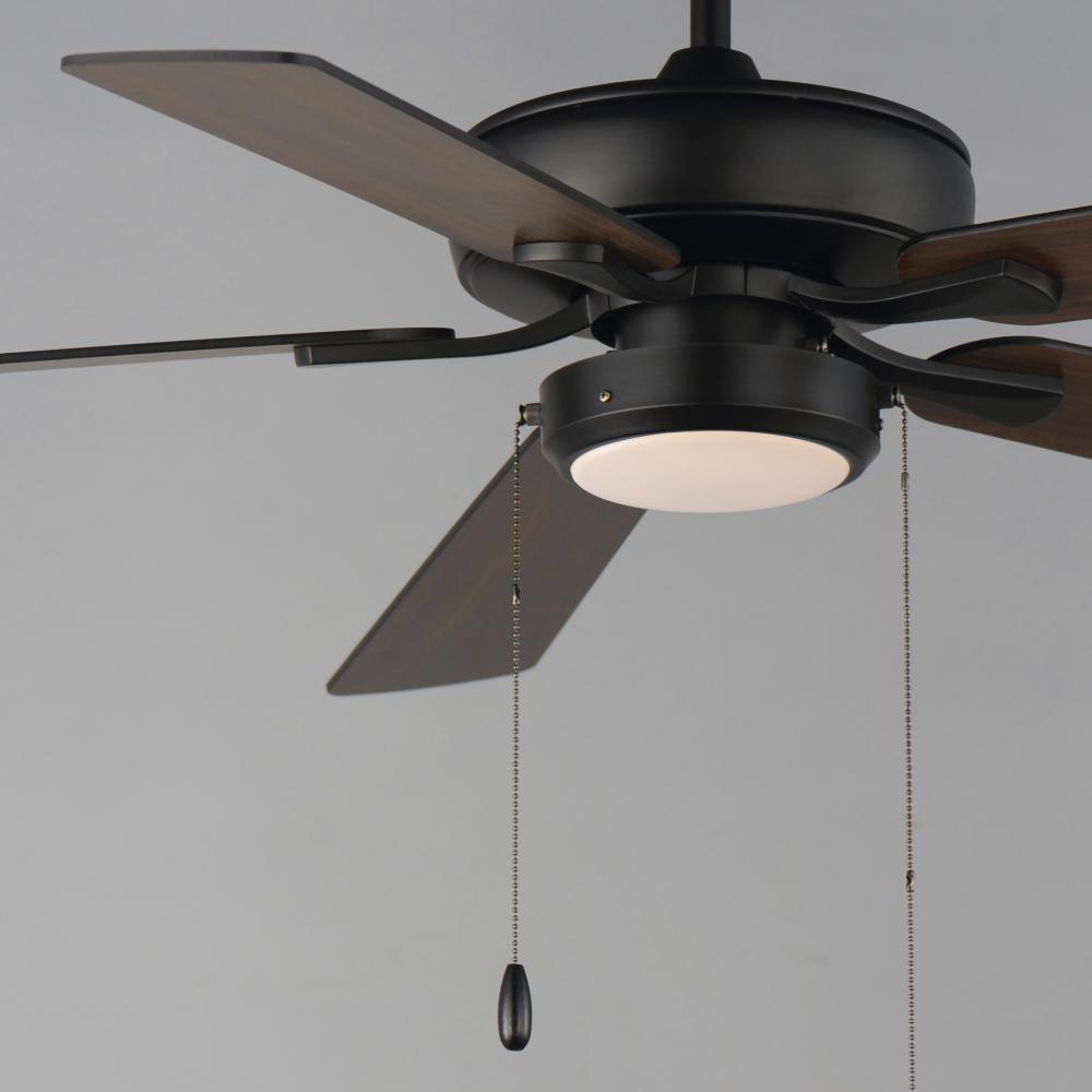 A long awaited update to the conventional indoor fan collection. Updated blades, brackets, and motor housing for more transitional spaces. A streamlined LED fan light kit pairs perfectly with the updated design. Available in Matte Black with Black/Walnut f