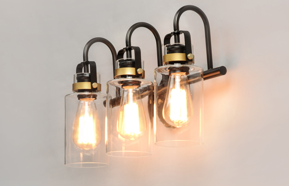 Modern farmhouse design requires vintage looks with an updated style. This collection fits this definition with minimalistic styled frames of Bronze with Gold accents that cradle Clear mason jar shaped glass. Add vintage bulbs for farmhouse appeal or tubul