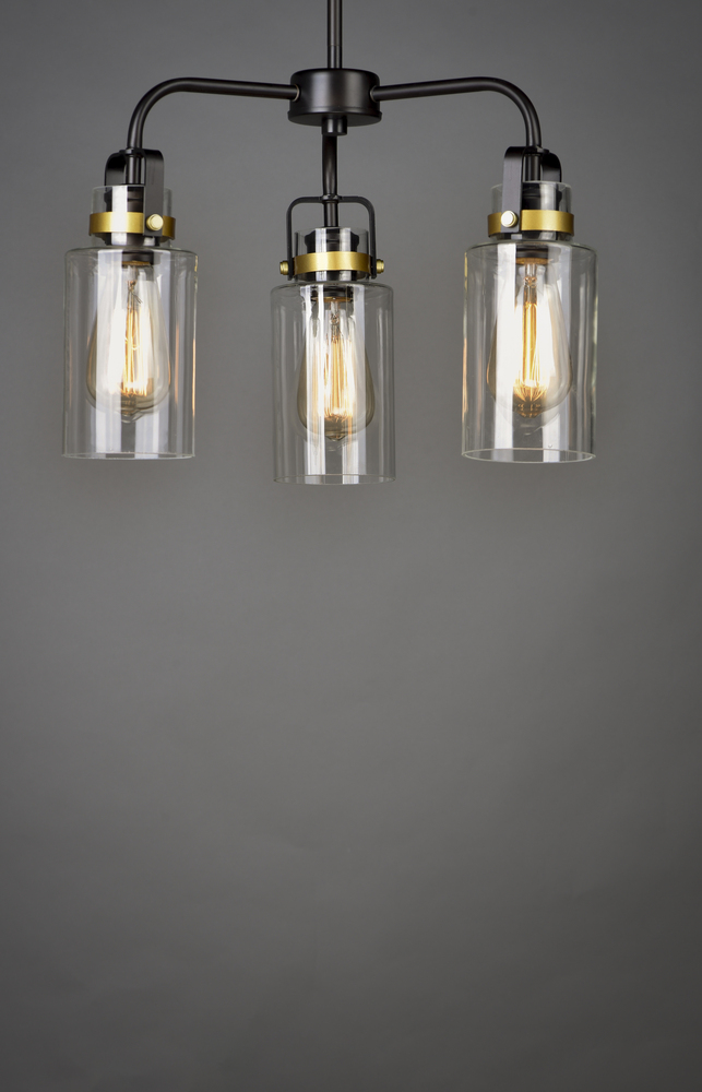 Modern farmhouse design requires vintage looks with an updated style. This collection fits this definition with minimalistic styled frames of Bronze with Gold accents that cradle Clear mason jar shaped glass. Add vintage bulbs for farmhouse appeal or tubul