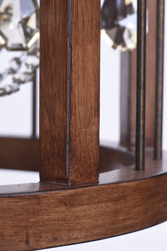 Cages constructed of wood, finished in Antique Pecan, blend beautifully with the metal bars painted in our rich Bay finish. Elegant chandeliers, draped in crystal, grace the interior of the cage to create a unique transitional style to fit a wide variety o