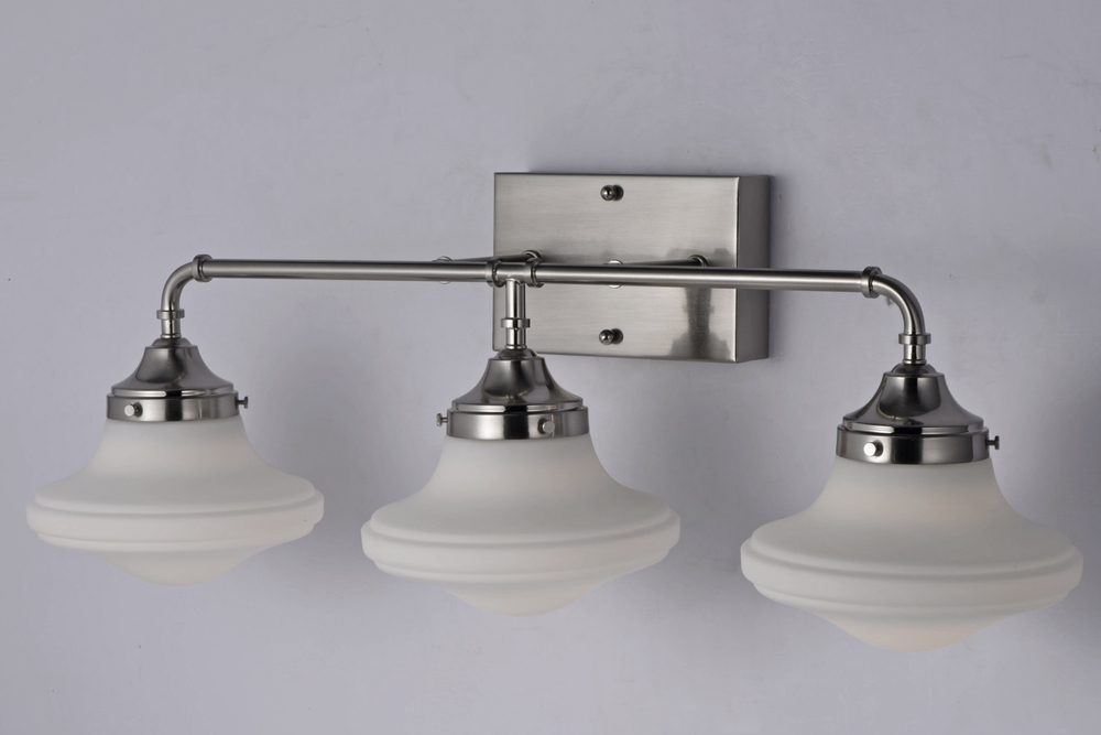 This classic look was updated with modern day styling and technology. Tubular metal frames finished in Satin Nickel support school house glass shades in Satin White. Powered by dimmable LED modules this collection is the perfect marriage of ageless styling
