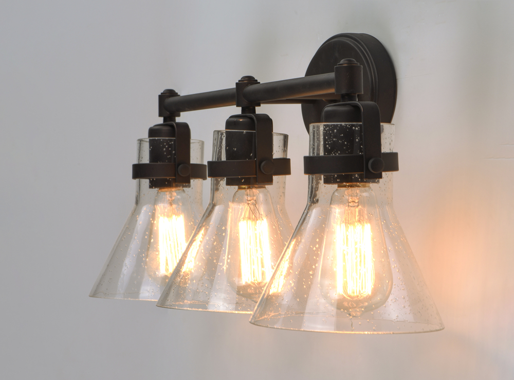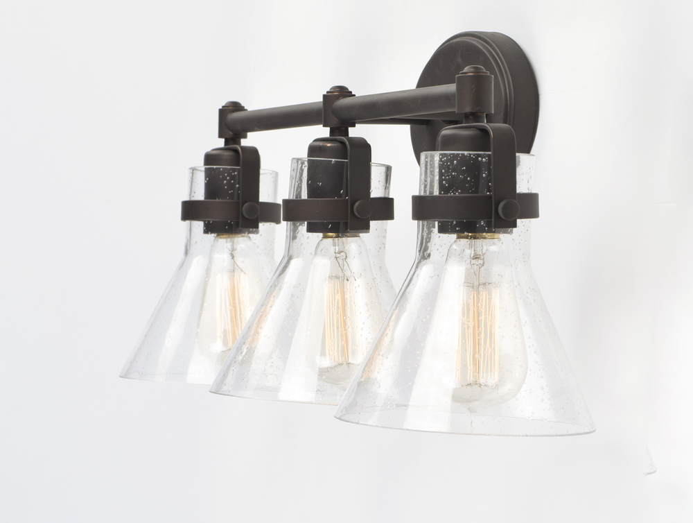 This nautical-inspired collection features Clear Seedy glass cones suspended by a yoke frame. The clear glass offers abundant lighting and compliments the styling of the fixture. Make it a more industrial look by adding filament E26 light bulbs.