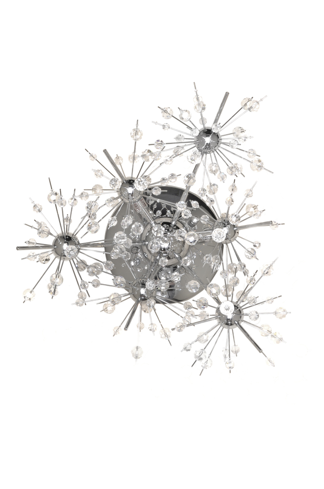 Spectacular display of Beveled Crystal beads of various sizes which are mounted on sculptures Polished Chrome metal formations which will sure to be the focal point of your room. The high power Xenon bulbs add sparkle to the crystal while producing a natu