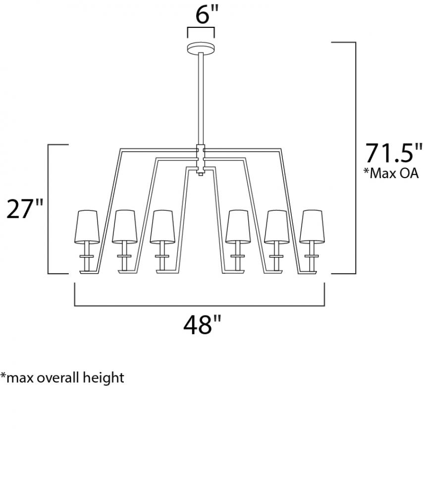 White opal glass shades suspend from angular metal frames available in our rich platinum dusk finish. The chandeliers' metal frames pivot which allows you to adjust the fixture creating a unique look and re-position the light to where it is needed.